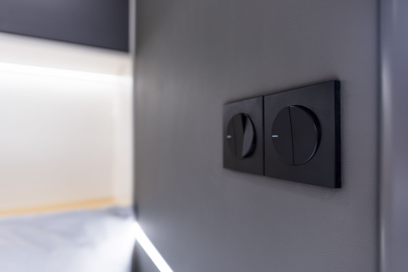 | Integrované žaluzie v oknech | LED světla |